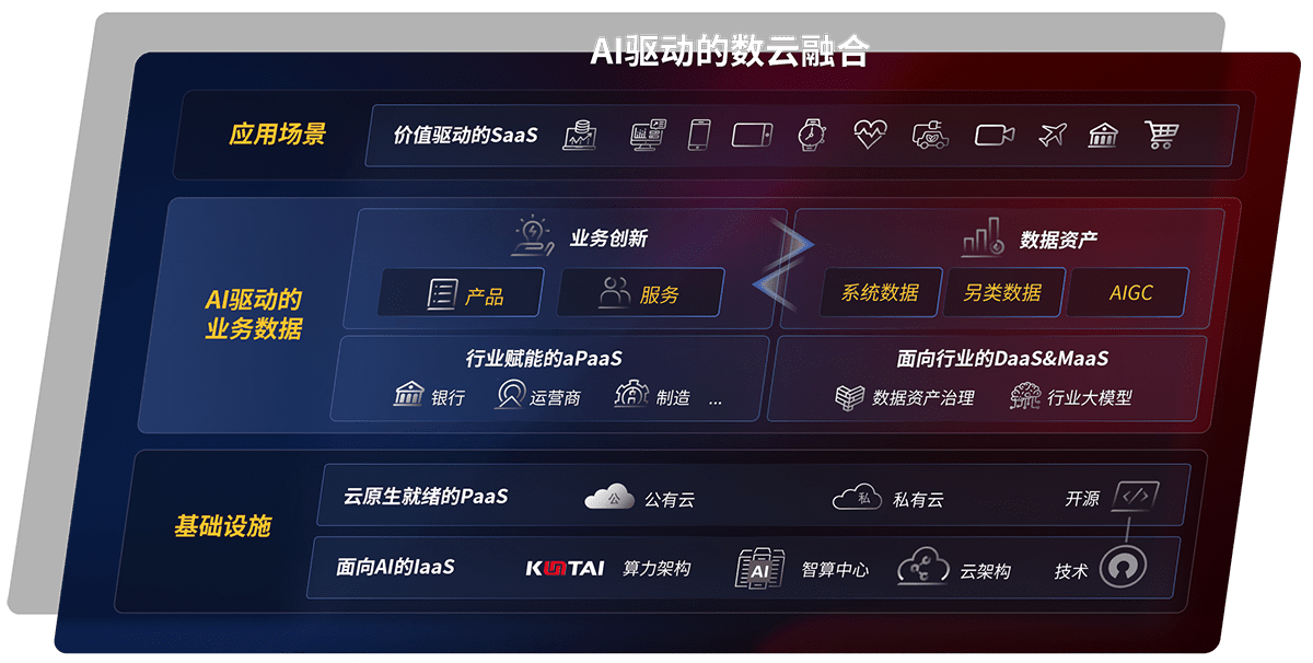 以君临国际鲲泰全国产化计算产品帮助金融行业客户构筑数字底座;以丰富的AI和数云产品及方案,,,,保障数据安全,,,,挖掘数据价值,,提升服务品质